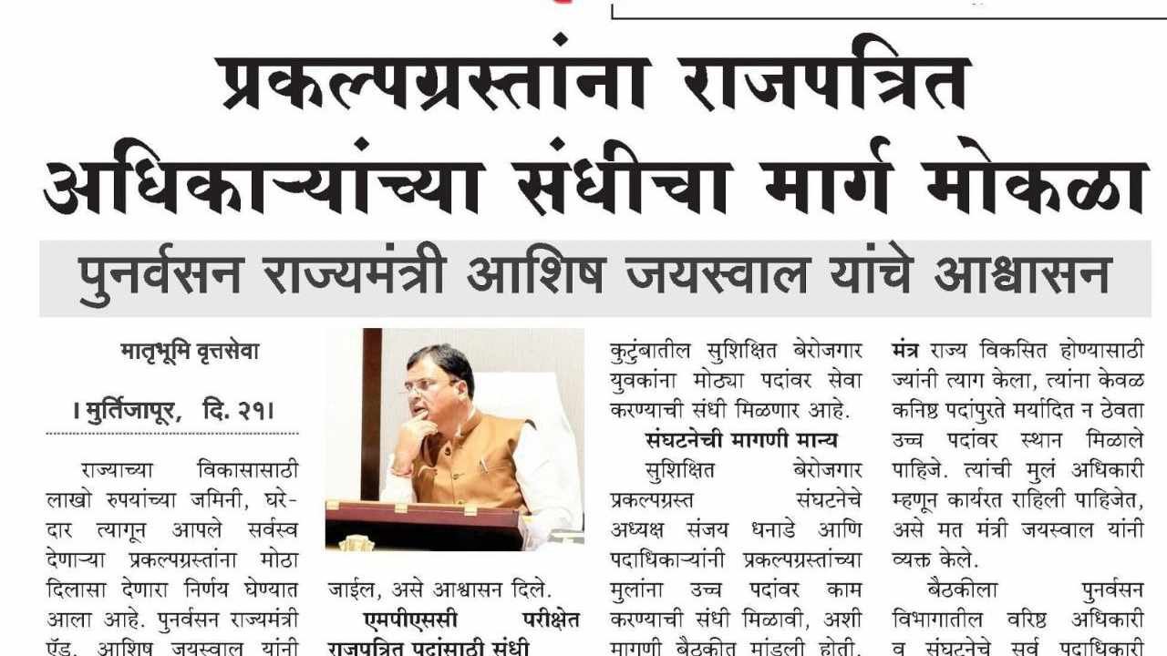 प्रकल्पग्रस्त व्यक्तींना (ज्यांची जमीन किंवा मालमत्ता विविध प्रकल्पांसाठी सरकारने घेतली आहे) फक्त वर्ग ३ आणि वर्ग ४ च्या नोकर्यांपुरते मर्यादित न ठेवता आता राजपत्रित (गॅझेटेड) अधिकारी पदांसाठीही संधी देण्यात येणार आहे.