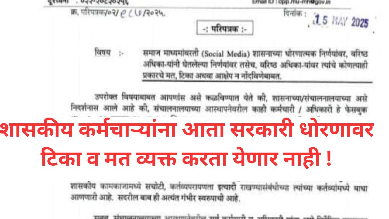 शासकीय कर्मचाऱ्यांना आता सरकारी धोरणावर टिका व मत व्यक्त करता येणार नाही ! शासन परिपत्रक जाहीर.Government Decision On No comment State Employees