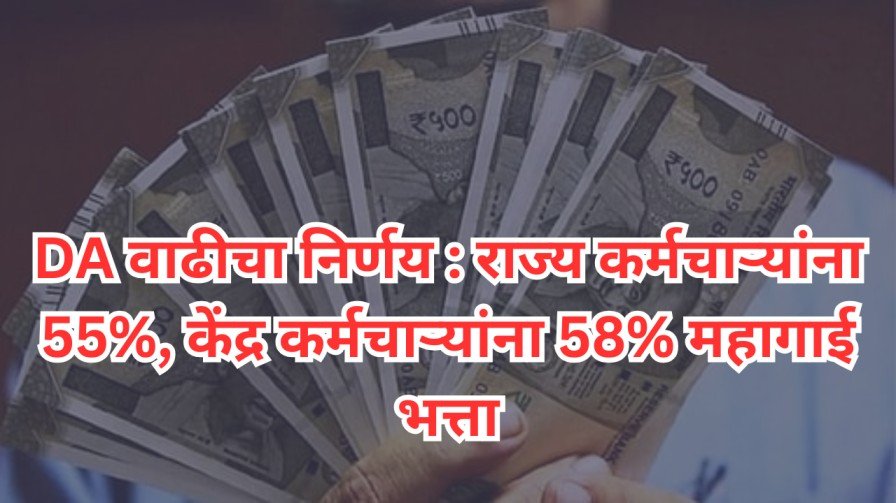DA वाढीचा निर्णय : राज्य कर्मचाऱ्यांना 55%, केंद्र कर्मचाऱ्यांना 58% महागाई भत्ता.DA Hike News