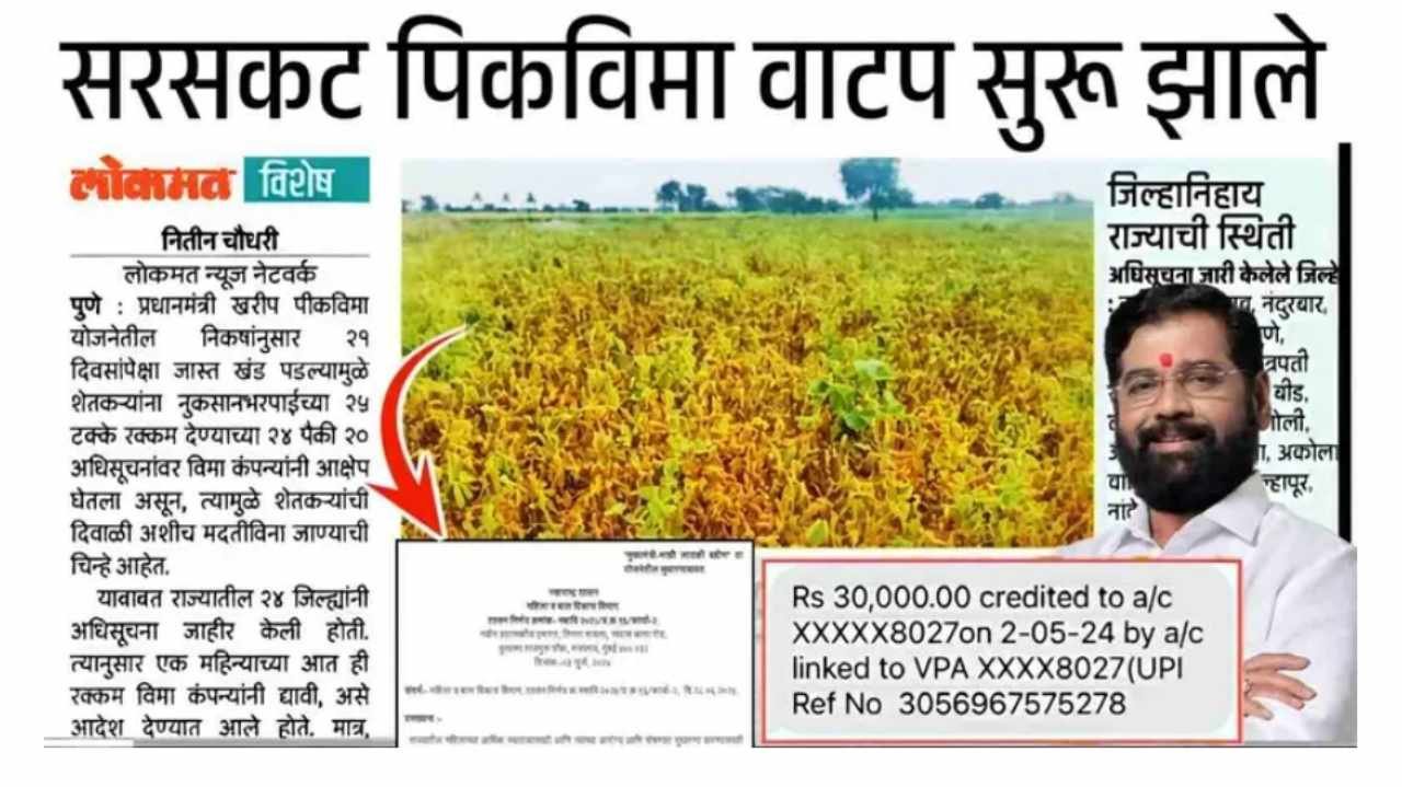PMFBY | पिक विमा बँक खात्यावर जमा होण्यास झाली सुरवात; या जिल्ह्यातील शेतकर्यांना मिळणार पीक विमा