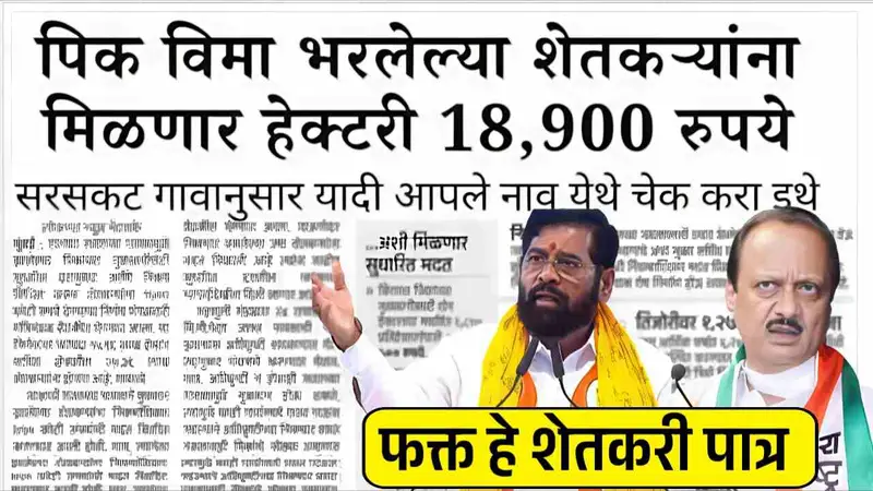“पिक विमा 2025: शेतकऱ्यांना प्रत्येक हेक्टरसाठी 18,900 रुपये” अशी निश्चित आणि विश्वासार्ह माहिती सध्या उपलब्ध नाही. अनेक बातम्या आणि माध्यमे वेगवेगळ्या आकडे आणि दावे मांडत आहेत. मी खाली काही महत्वाच्या गोष्टी आणि सत्यापित माहिती दिली आहे — तुम्हाला हवे असल्यास, मी तुमच्या जिल्ह्यासाठी तपशीलवार यादीही शोधू शकतो.
