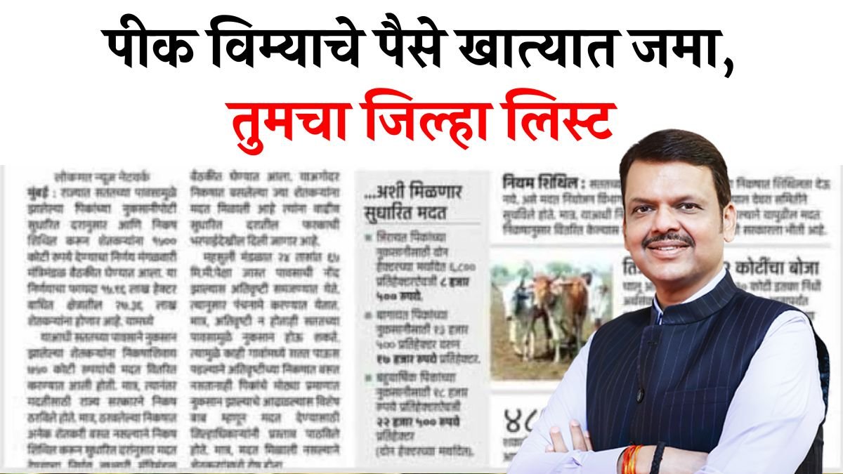 Pradhan Mantri Fasal Bima Yojana (पीएम पीक विमा) अंतर्गत अर्ज केला असेल, तर तुमच्या जिल्हा (Jalna) साठीही यादी / भरणा होत असल्याची शक्यता आहे.