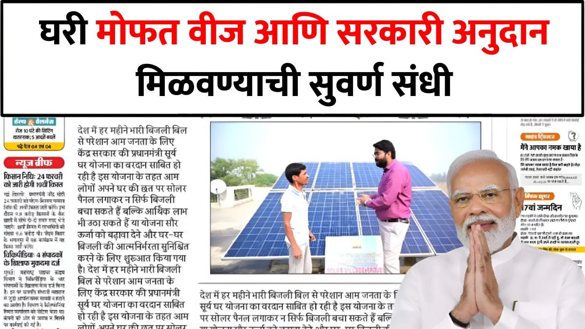 ही केंद्र सरकारची प्रमुख योजना घरांना सौर ऊर्जा (Solar Power) वापरून मोफत वीज मिळवून देण्यासाठी आहे.