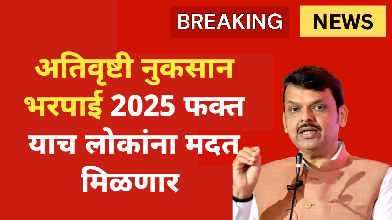राज्य सरकारने २०२५-मध्ये आलेल्या अतिवृष्टी (heavy rains) आणि पुरांमुळे झालेल्या नुकसानासाठी भरपाई (compensation / नुकसान भरपाई अनुदान) जाहीर केली आहे. खाली महत्त्वाची माहिती आहे — पण “केवळ याच लोकांना मदत मिळणार” हे स्पष्टपणे सांगणं शक्य नाही कारण अटी व निकष अद्याप पूर्णपणे पब्लिश झालेले दिसत नाहीत.