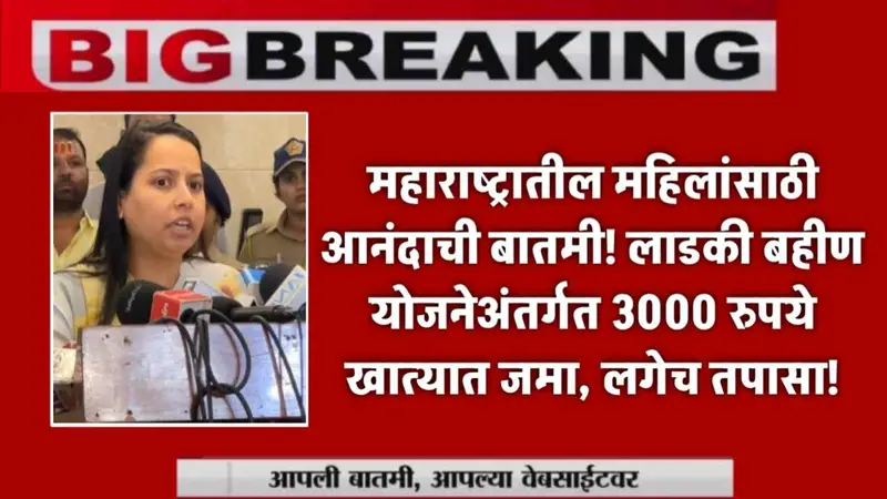 खूप चांगली बातमी आहे! महाराष्ट्र सरकारने मुख्यमंत्री माझी लाडकी बहीण योजना अंतर्गत पात्र महिलांच्या खात्यात ₹3,000/- (जुलै-ऑगस्टची एकत्रित दोन महिनेची रक्कम) जमा करायला सुरूवात केली आहे. 💰आता खालील सोप्या पद्धतीने तुम्ही तुमचा अर्ज आणि पेमेंट स्टेटस सहज तपासू शकता:
