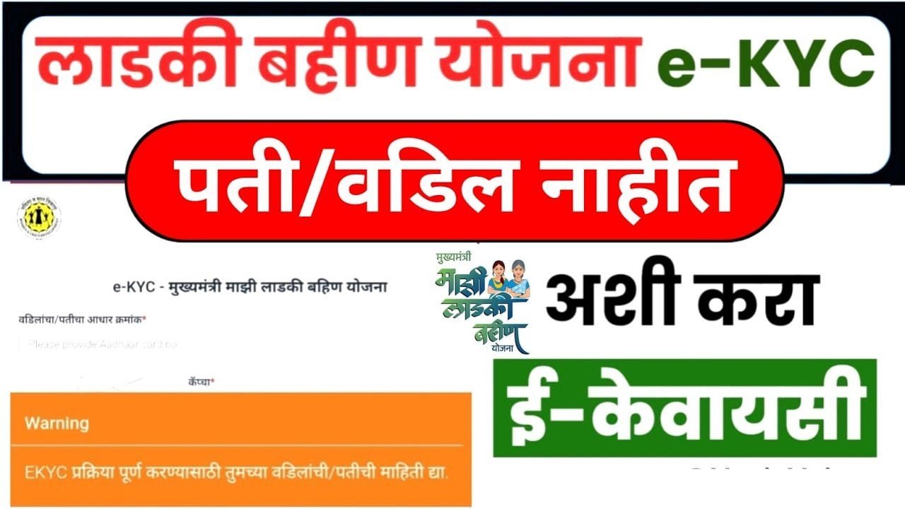 लाडकी बहीण योजना (Mukhyamantri Majhi Ladki Bahin Yojana) अंतर्गत वडील किंवा पती हयात नसलेल्या (जसे की विधवा, घटस्फोटीत, निराधार इ.) महिलांनी आपली e-KYC कशी करावी याबद्दल सोप्या शब्दांत मार्गदर्शन 👇