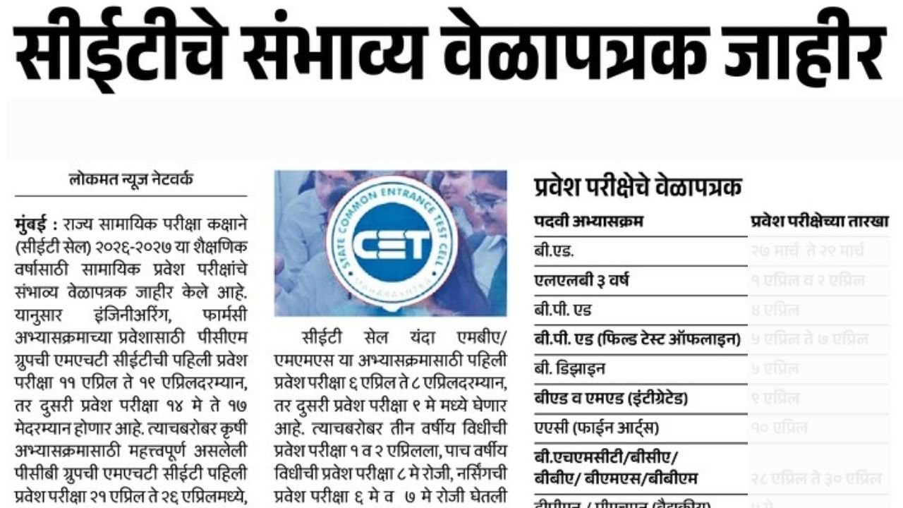 📅 MHT-CET 2026 परीक्षेच्या मुख्य तारखा