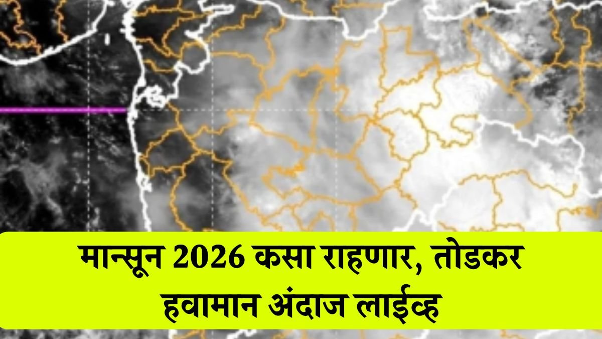 2026 साठी मानसूनचा नेमका “लॉन्ग-रेंज” अंदाज (Live) उपलब्ध असणे कठीण आहे, कारण हवामान विभाग (जसे की IMD) साधारणपणे काही महिन्यांपूर्वीच पुढील मोन्सूनचा अंदाज जारी करतात. पण मी सध्या उपलब्ध माहिती + काय ट्रेंड दिसतोय, तो सांगू शकतो आणि कसे मॉनिटर करावे हेही देऊ शकतो.