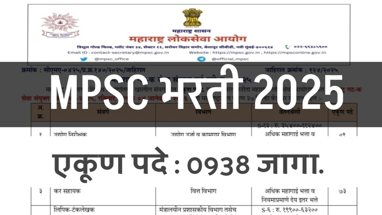 Maharashtra Public Service Commission (MPSC) ने गट-C सेवा (Group C Service) अंतर्गत ९३८ पदांची भरती जाहीर केली आहे.