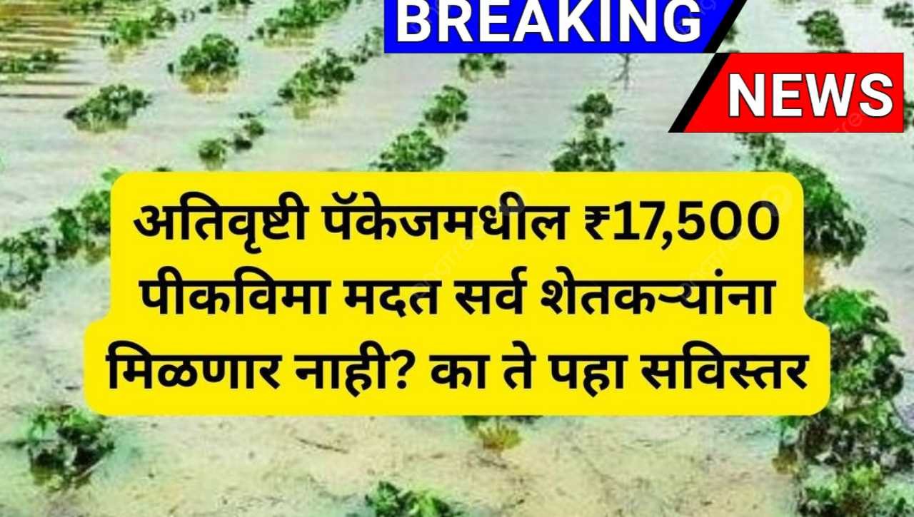 सत्य माहिती — अतिवृष्टी पॅकेजमधील ₹17,500 पीकविमा मदत सर्व शेतकऱ्यांना मिळणार नाही. बाब अशी आहे: