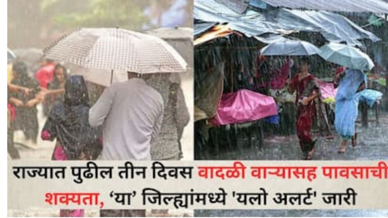 पुन्हा पावसाचा जोर वाढणार! राज्यात पुढील तीन दिवस वादळी वाऱ्यासह पावसाची शक्यता, ‘या’ जिल्ह्यांमध्ये ‘यलो अलर्ट’ जारी. IMD Weather Update