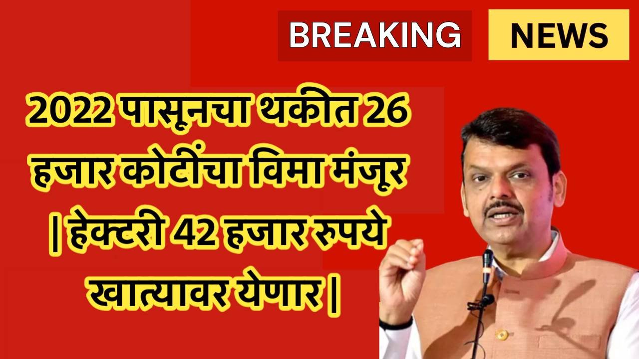 pik vima | 2022 पासूनचा थकीत 26 हजार कोटींचा विमा मंजूर | हेक्टरी 42 हजार रुपये खात्यावर येणार