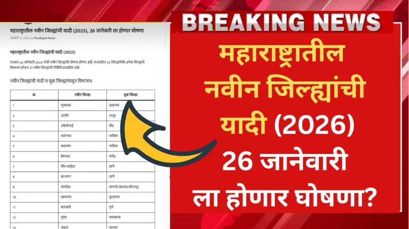 Maharashtra New Districts: महाराष्ट्रातील नवीन जिल्ह्यांची यादी (2026), 26 जानेवारी ला होणार घोषणा?