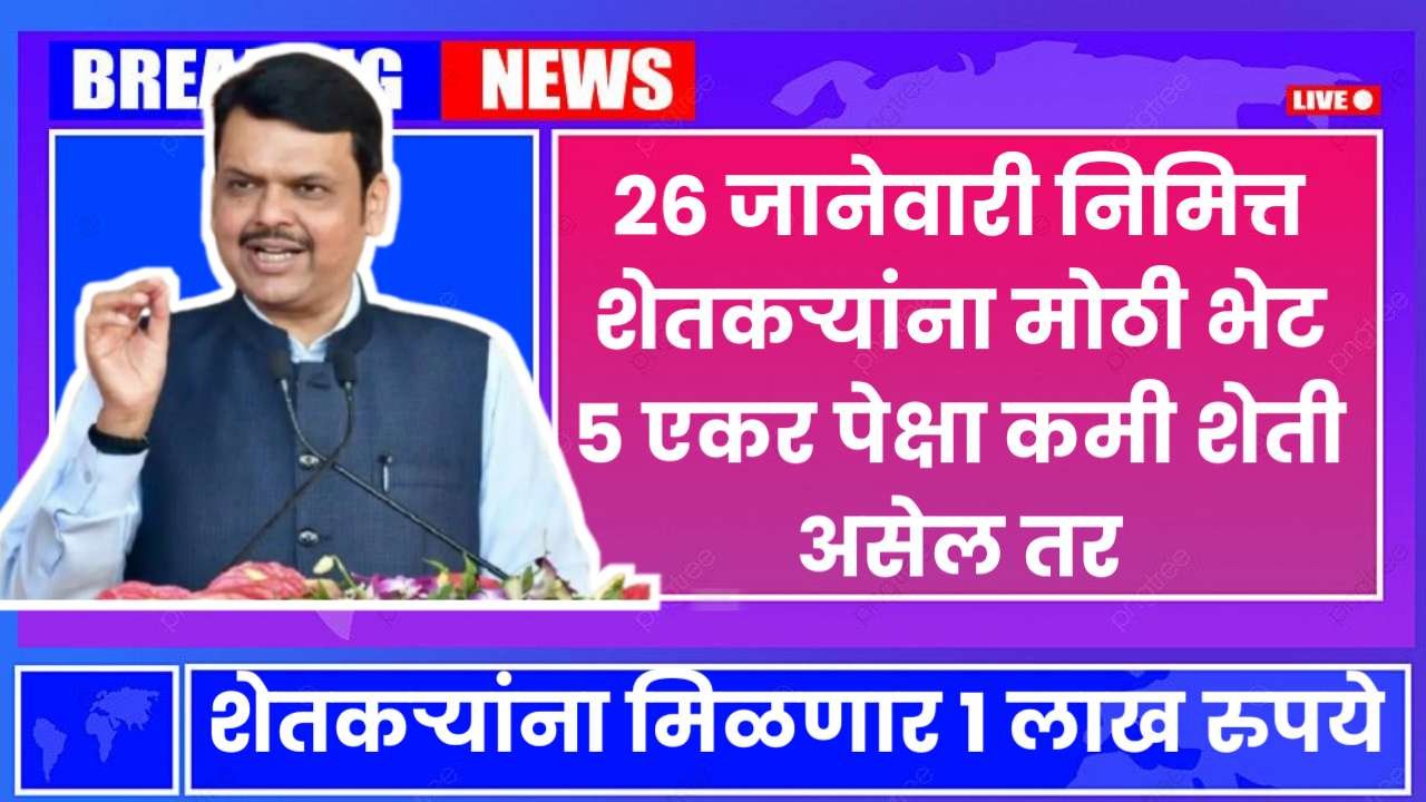 Good news | मोठी बातमी या 26 जानेवारीला शेतकऱ्यांना 1 लाखांची मोठी भेट!