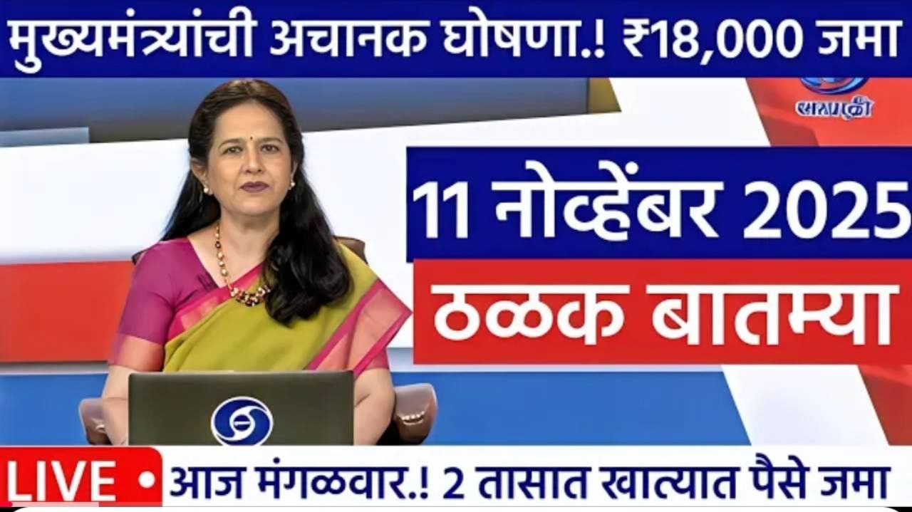 11 नोव्हेंबर 2025 रोजी शेतकऱ्यांना संबंधित ठळक बातम्या खालीलप्रमाणे आहेत: