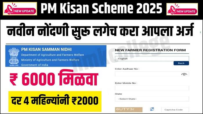 PM-Kisan Samman Nidhi Yojana (पीएम–किसान योजना) मध्ये २०२५ साली “नवीन शेतकरी नोंदणी + ₹2,000” (हप्ता) मिळविण्यासाठी चरण-दर-चरण मार्गदर्शक (मराठी) — जर तुम्ही महाराष्ट्रातील (उदा. आपल्या जिल्ह्यातील) शेतकरी असाल 👇