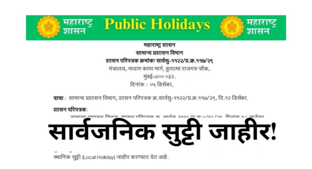 हो — खरं आहे. डिसेंबर २०२५ मध्ये काही दिवस सार्वजनिक सुट्ट्या घोषित झाल्या आहेत, ज्यामुळे शाळा, महाविद्यालये आणि सरकारी कार्यालये/बँका बंद राहतील. खाली काही प्रमुख सुट्ट्या आणि कारणे आहेत:
