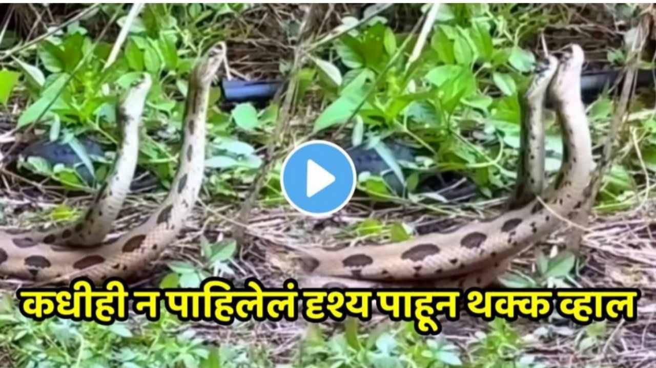 Viral video : सापाचे नाव एकले तरी अनेकांना घाम फुटतो. सापाची भीती अनेकांना असते. साप या शब्दानेही अनेकांची भीतीने गाळण उडते. सोशल मीडियावर अनेक व्हिडिओ व्हायरल होत असतात. यात बऱ्याचदा प्राण्यांच्या जीवनाशी संबंधित व्हिडिओ देखील शेअर केले जातात. हे व्हिडिओ नेहमीच आपल्याला थक्क करण्याचे काम करतात. आताही इथे असाच एक व्हिडिओ व्हायरल होत आहे. नुकताच व्हायरल होत असलेल्या या व्हिडिओमध्ये दोन सापांचे मिलन होताना दिसून आले. हे अनोखे दृश्य फारच रंजक असून याचा व्हिडीओ व्हायरल झालाय.