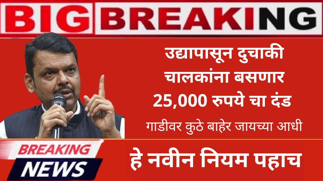 “प्रत्येक दुचाकी चालकाला 25,000 रुपये दंड” — हे चुकीचे आहे, अशा नियमाचा आत्ता कोणताही आधिकारिक स्रोत नाही.