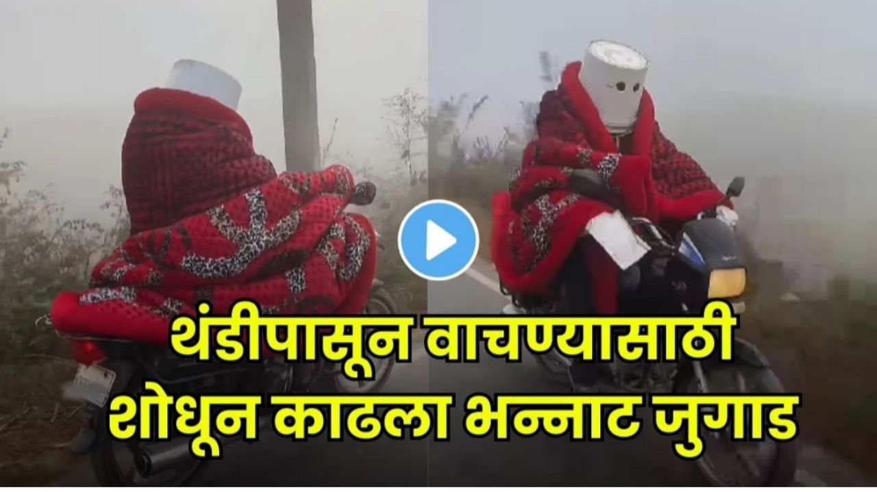 व्हिडीओत एक तरुण चक्क ब्लँकेट अंगावर घेऊन बाईक चालवत असल्याचं दिसतं. इतकंच नाही तर त्याने हेल्मेटऐवजी थेट प्लास्टिकची बादली डोक्यावर घातली आहे. त्या बादलीतून समोर पाहण्यासाठी बादलीला दोन छिद्र पाडलेले आहेत, ज्यामुळे रस्ता स्पष्ट दिसतो. पूर्ण शरीर ब्लँकेटने गुंडाळलेलं, डोक्यावर बादली आणि हा युवक आत्मविश्वासात चालवत आहे बाईक; हे दृश्य पाहून कोणीही थक्क होईल. थंडीपासून वाचण्यासाठी हा जुगाड जितका मजेशीर आहे, तितकाच धाडसीही आहे.